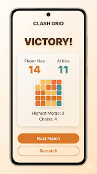Clash Grid: Merge Puzzle Duel เป็นเกมปริศนาฟรีโดย Ahmet Altun ที่นี่ ผู้เล่นแข่งขันกับคู่ต่อสู้ AI โดยการผลัดกัน วางและรวมแผ่นป้ายหมายเลข ปะทะกันเพื่อยึดครองดินแดนและครอบงำกระดาน เป้าหมายคือการควบคุมพื้นที่บนกระดานให้มากขึ้นในตอนท้ายของการแข่งขัน